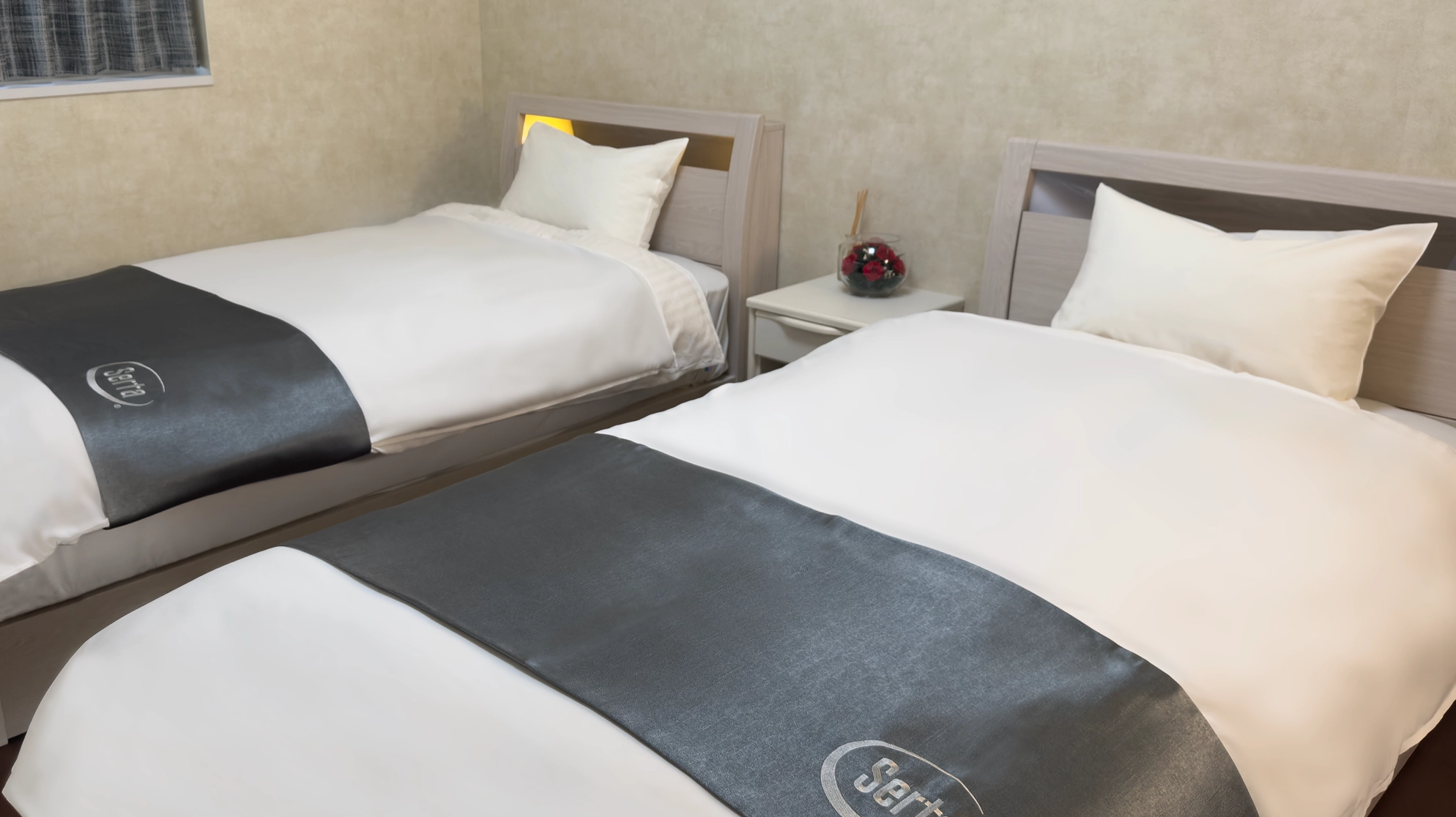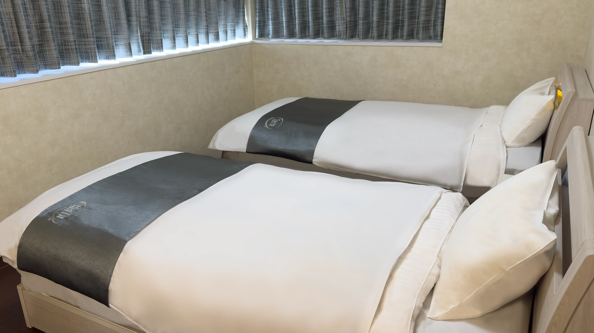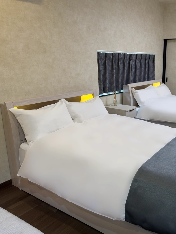 セミダブルベッドを2台備えた、洋室の中で最もゆとりのあるお部屋。落ち着いた内装と快適な寝心地で、ゆったりと安心してお過ごしいただけます。