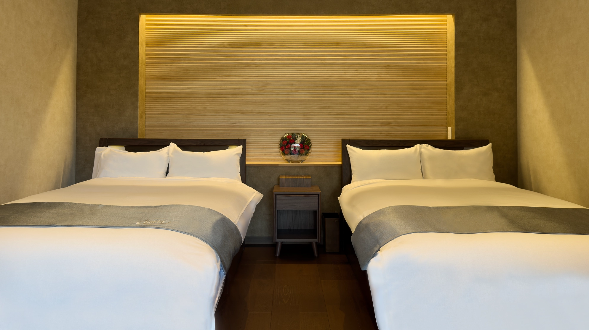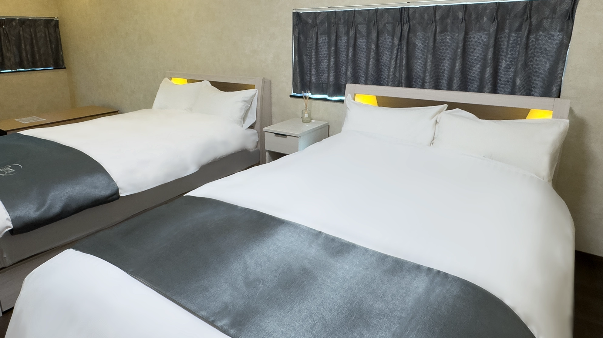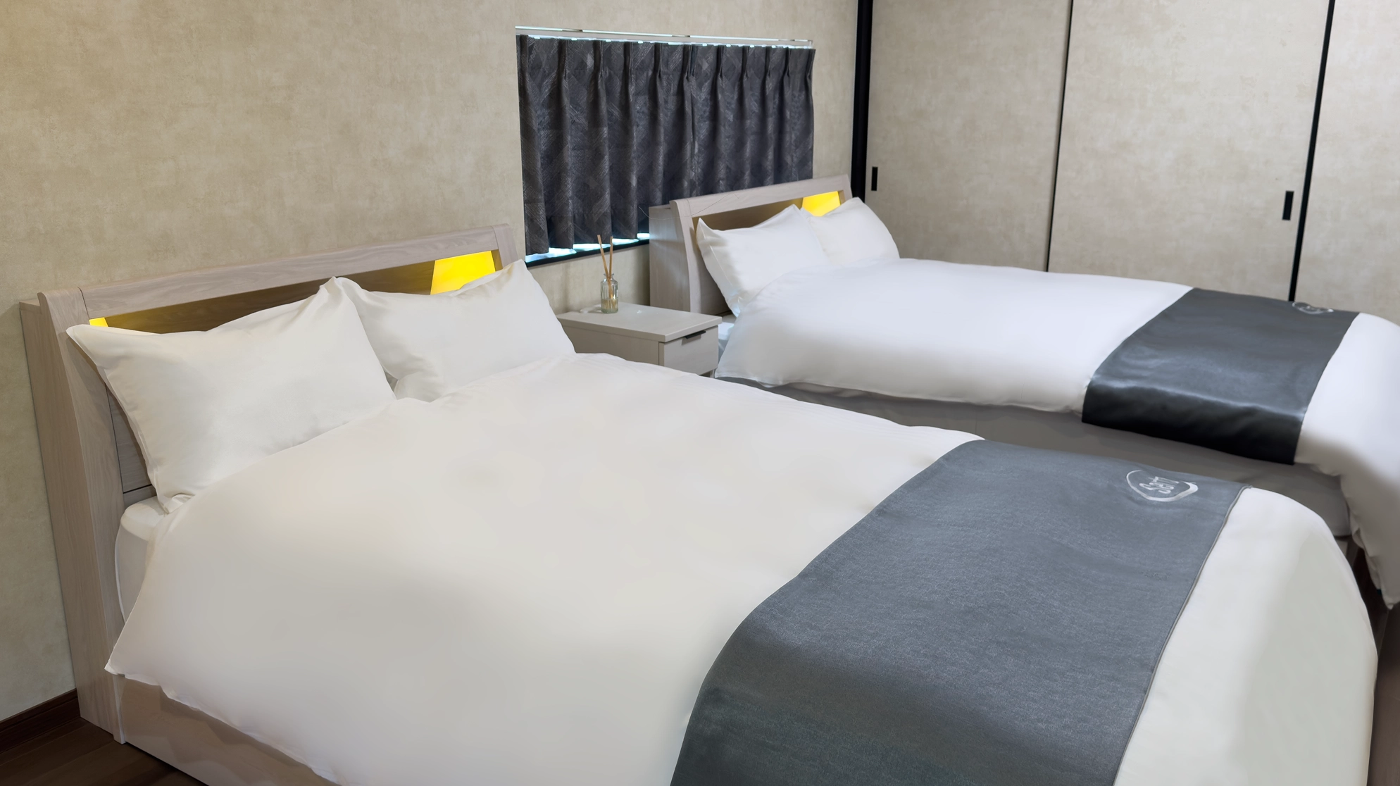 セミダブルベッドを2台備えた、洋室の中で最もゆとりのあるお部屋。落ち着いた内装と快適な寝心地で、ゆったりと安心してお過ごしいただけます。