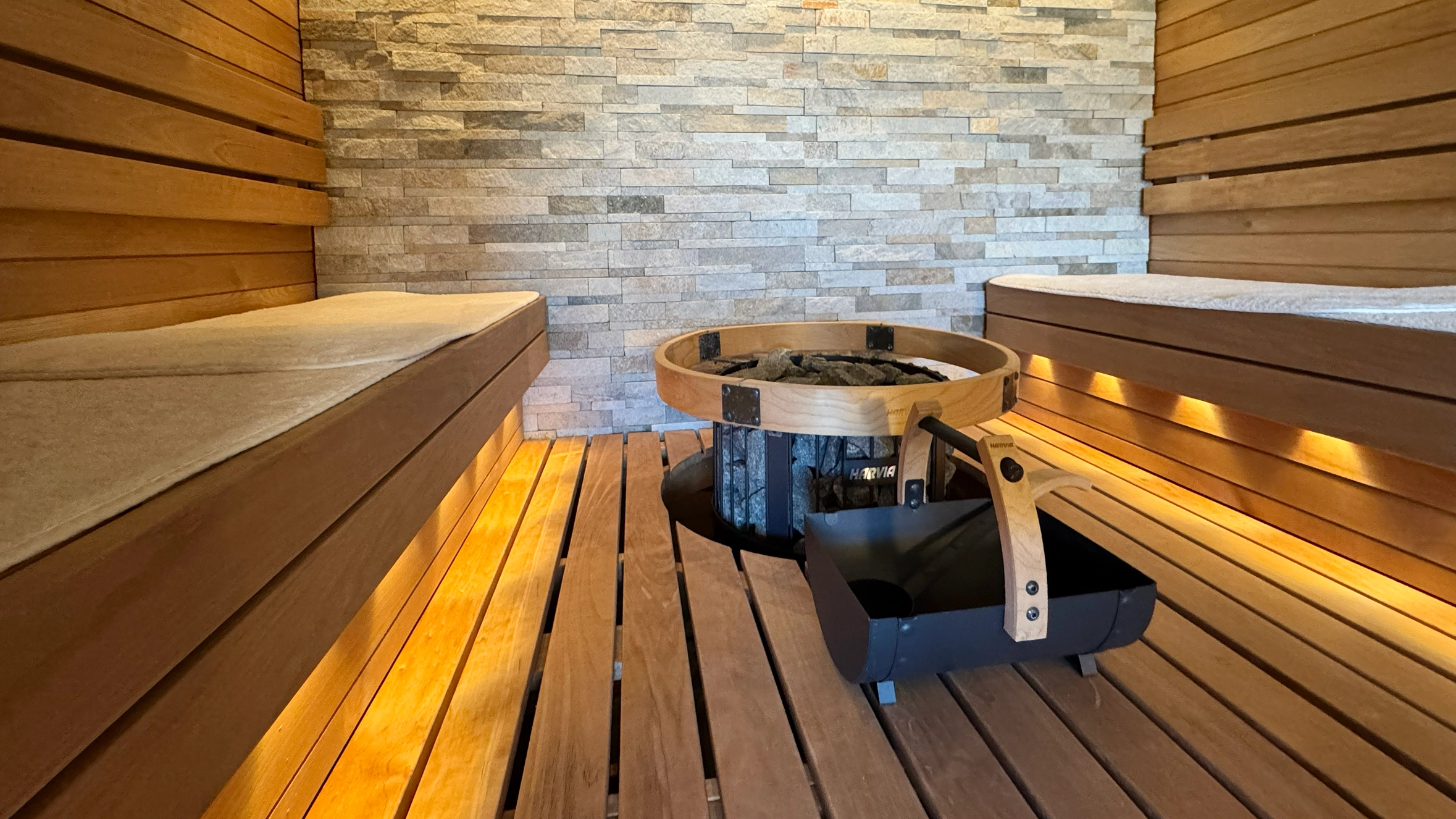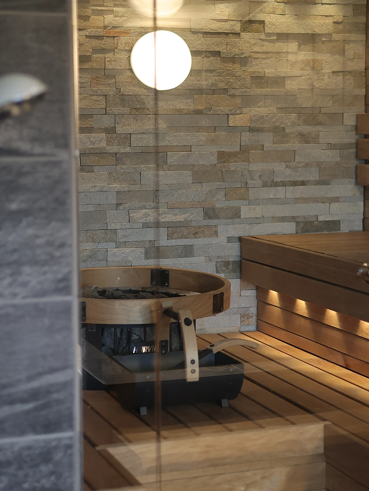 ロウリュサウナは、最大4名まで利用可能で、熱と蒸気が体をじんわりと温めます。アロマの香りが漂う蒸気とともに、心も体もほどけるリラックスと爽快感を味わえます。